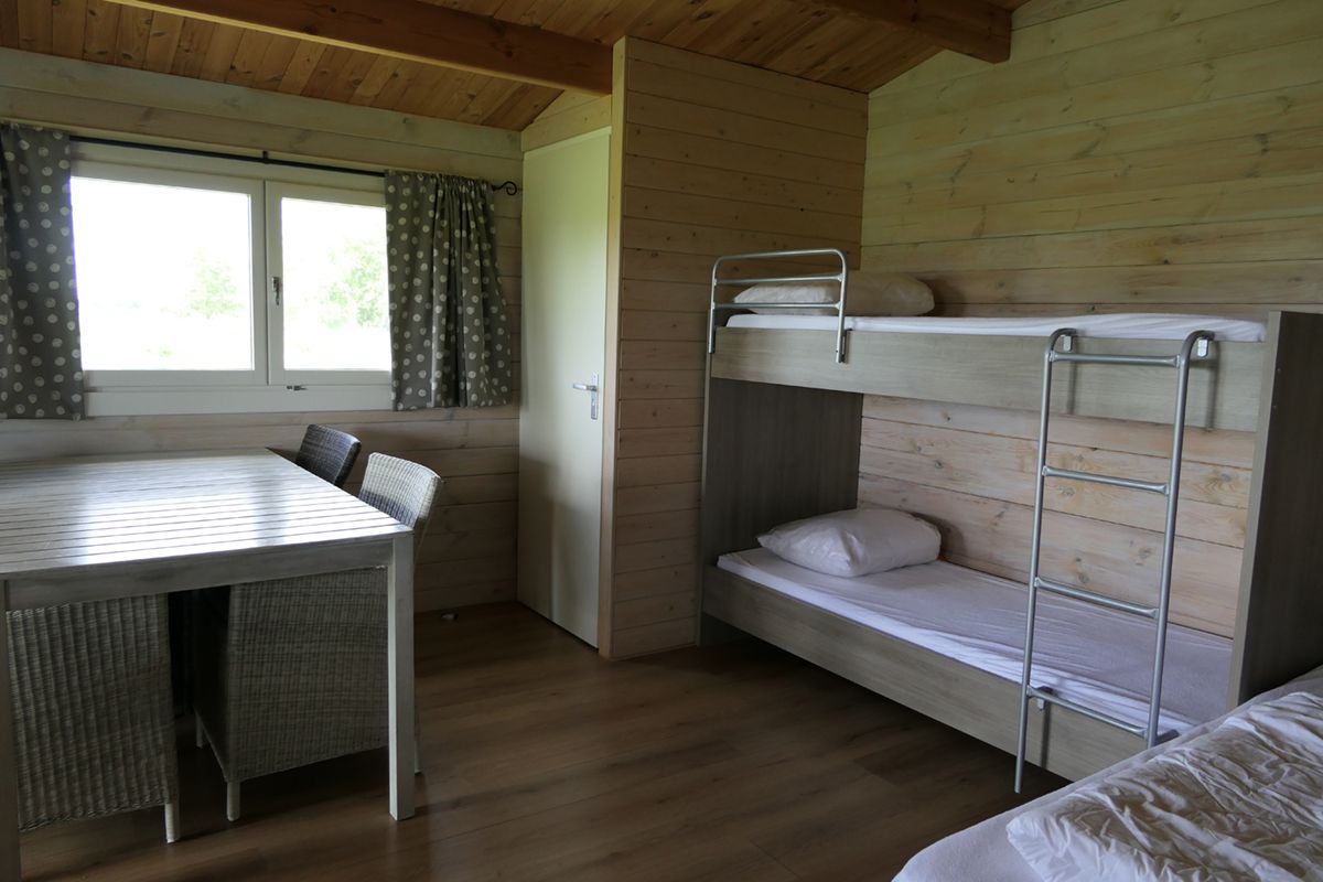 At te back of the campsite, is situated Cabin Waterral. Cabin Waterral is a firm cabin with a big veranda. This cabin sleeps 4 persons in one room. The ‘Waterral’ is located at the back of the camping-area and has beautiful views over the vegetable patch, the camping-field and the big pond.